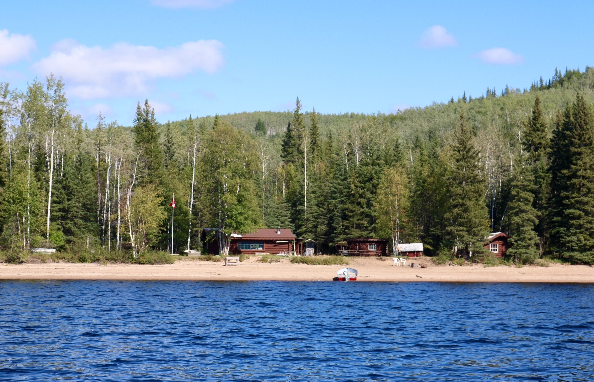 View of Nahanni Mountain Lodge from Exploring Little Doctor Lake